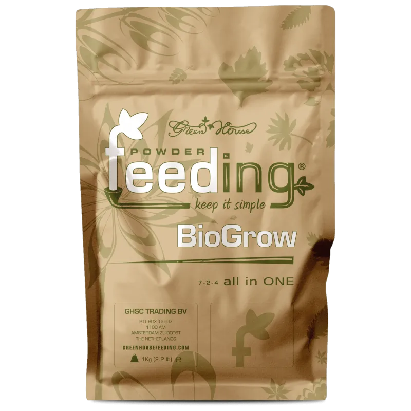BioGrow is an ‘all-in-ONE’ blend of carefully selected natural materials, formulated specifically for the vegetative growth stage of fast growing plants. Essential nutrients are provided for superior growth, both readily available for the plant and slowly releasing to supply all nutrients over a period of 8 weeks. During vegetative growth, plants require higher amounts of Nitrogen. Nitrogen makes the cells divide and multiply, which is the reason that plants need higher amounts of it during the vegetative growth stage when leaf and root development is at its peak.